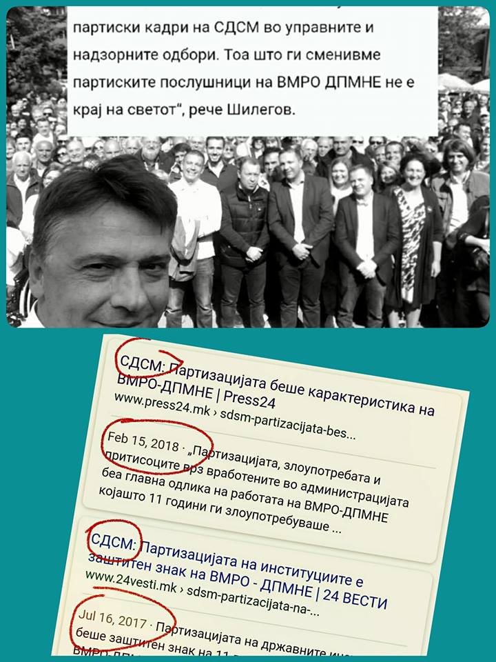 Отприлика ваква изјава даде и скопскиот градоначалник Петре Шилегов, од партијата СДСМ, која до завчера обвинуваше за партизација на државата и како кога ќе дошле на власт ќе биле поинакви.И еве, дојдоа на власт, и не знаат што прават, а ни каков револт предизвикуваат со вакви изјави.