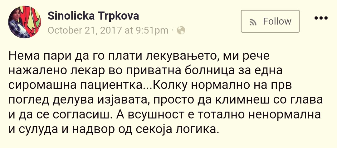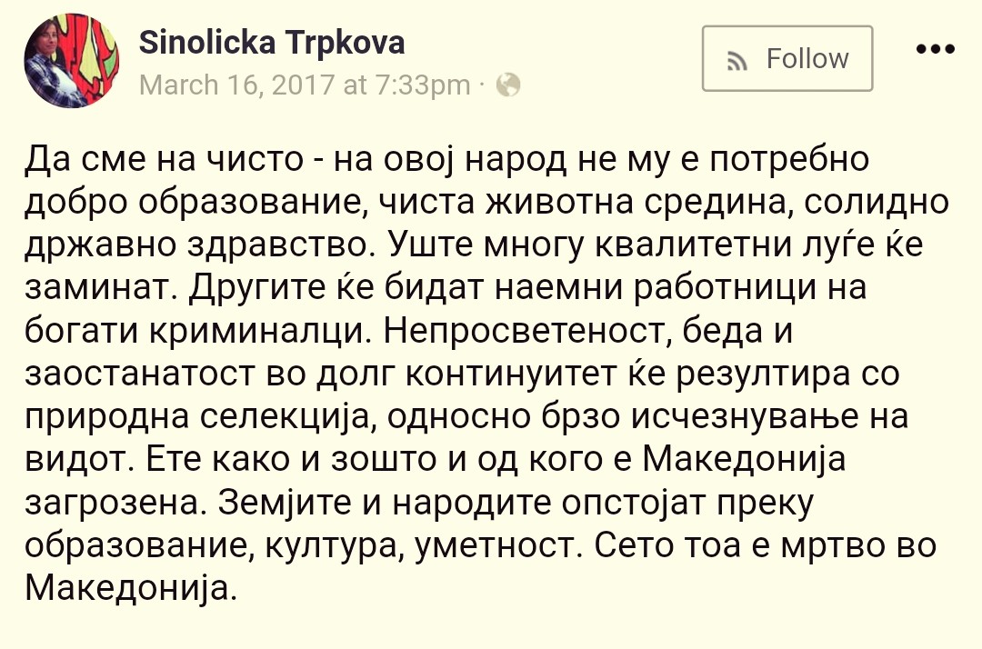 Зошто Марсел Мелес е интересен случај ? Прво, бидејќи Владата воопшто не реагира околу оваа социјална драма и неправда. А, второ, бидејќи е сопруг на професорката од ФДУ, Синоличка Трпкова, која со години, жолчно и со голема доза на горчина, пишуваше за криминалите на Никола Груевски и на улица протестираше за неправдите кон работниците, за шивачки, за работнички маки, за иселување на млади, за социјална правда.
