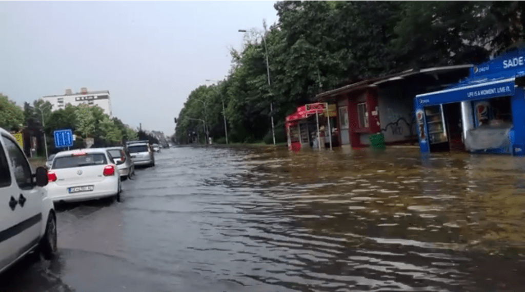 Речиси цел град е во вода ,,до гуша”-поплавени беа главните булевари, кои се под Град Скопје, особено сервисните улици во надлежност на општините.