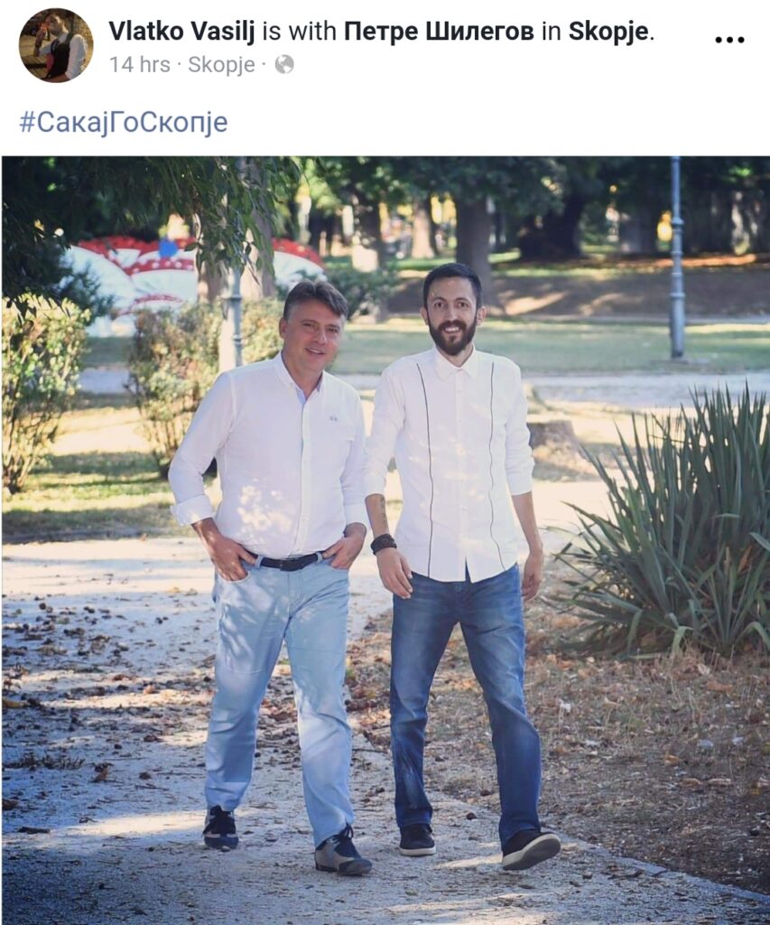 Петре Шилегов, за кој лани медиумите информираа дека станал градоначалник на метрополата, во лабава прошетка заедно со службеникот ,,за нешто” во бараките му, Влатко Васиљ.