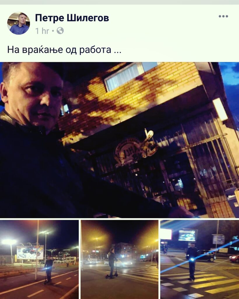 Скопскиот градоначалник, Петре Шилегов, многу љуби да се вози со електро-тротинет.