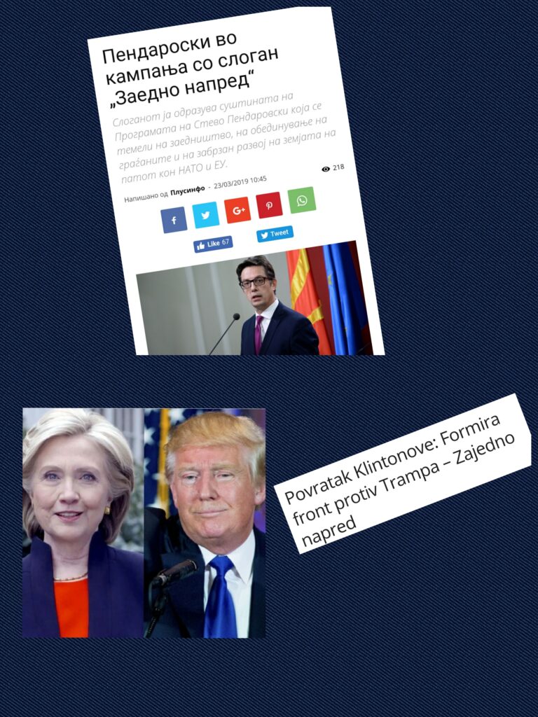 Она што зачудува во случајов не е копирањето на туѓ слоган, туку потребата од преземање на идентична парола од жестоката ривалка на Трамп, а во исто време, СДСМ, упорно тврди дека негува добри односи со сегашната американска администрација.