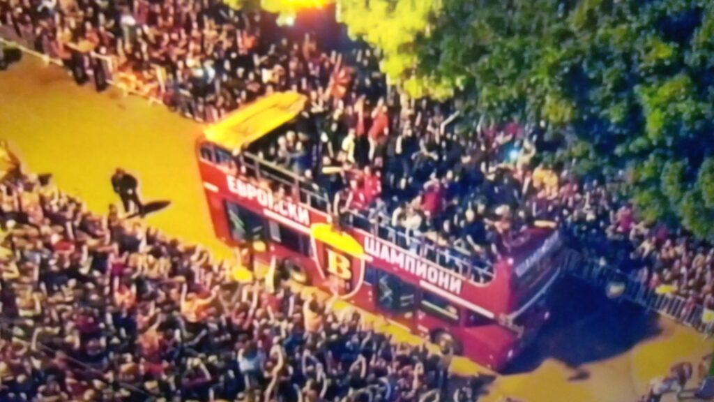Незапаметен број на граѓани, вечерва, пред полноќ ги пречекаа шампионите на ,,Вардар” на плоштадот ,,Македонија”. Скопје, вечерва, стана за момент главен град на Европа.