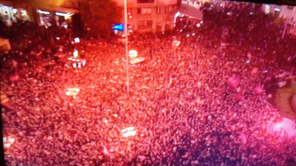 ,,Вардаре не можам бееез тебе, не можаам без тебее…и ако денес изгуууубиме, не те оставаме….Вардаре, Вардаре, до крај за тебе ќе гинеме..”, ечи вечерва од секој агол на Скопје, иако се веќе ситни ноќни часови.