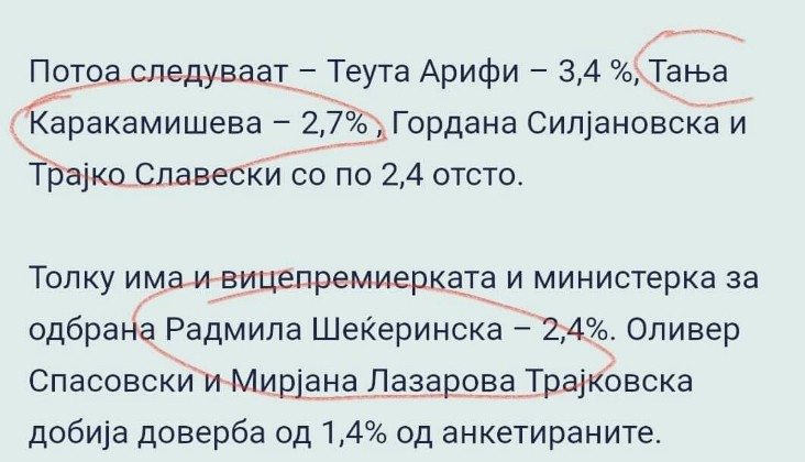 Според последната анкета на Телма, рејтингот и` е ,,забетониран” на 2,7 отсто, зад Татјана Каракамишева, па овој индикатор укажува дека кариерата за календар е многу реална.