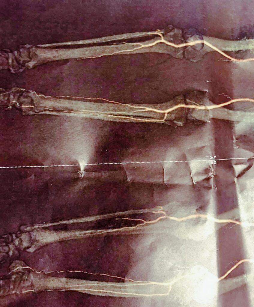 Направивме дијагнозата, беше целосно разочарувачка – како што може да се види на сликата, немам артерии на лева нога, од под колено. Чудо како сум функционирал сиве години!? Со колатерала, разбира се.