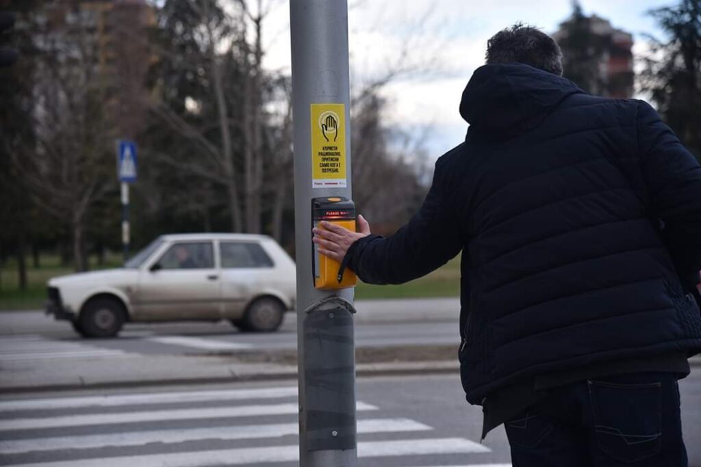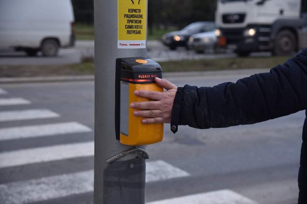 Тастерот на семафорот на булеварот Србија е донација од компанијата ОКТА. Се предвидува поставување вакви тастери на повеќе пешачки премини на градските булевари.
