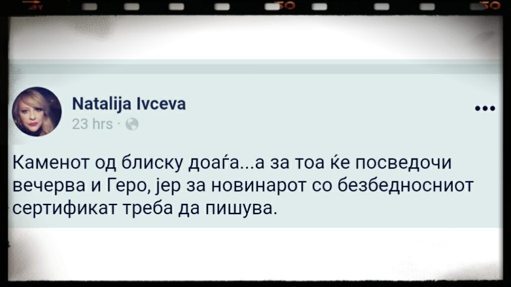 И многу други колеги добиваат закани од луѓе блиски до таа сотоната, но секако тебе тоа не те интересира. Ти не креваш ни телефон да прашаш кому, дали, нешто треба околу тоа, камоли дали некој е болен, му починало дете, па дополнително го цедиш и му земаш животни сокови со твои небулози.