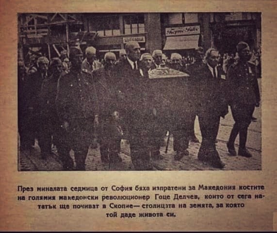 Свеченото и искрено испраќање на светите коски на Гоце, кое новата ОФ Бугарија го организира, исто така претставува голем историски и симболичен чин кој покажува дека во Македонија, во цела Југославија, како и овде во ОФ Бугарија, работите од корен се променија и тоа во смисла и пред се главно на довршување и логичен крај на историското дело на Гоце и на сите негови современи и подоцнешни ученици и соборци.