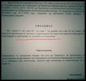 ,,Пратениците не смеат да се конектираат од дневната или од спалната соба…пратениците може да одлучуваат и со телепатија…пратениците не смеат да носат облека со обележја од салони за маникир и педикир..“, се само дел од бизарните, злобни, нечовечни и инфантилни 3.000 амандмани, поднесени од пратениците на ,,Левица”, Димитар Апасиев и Борислав Крмов со кои толку очебијно и дрско – наголемо се забавуваат и ја блокираат работата на Собранието на Македонија за време на пандемија во која секој ден луѓе тешко се разболуваат од Ковид-19, а бројките на починати растат. Ја блокираа и помошта за социјални категории на луѓе, на самохрани родители, на лозари, пензионери, на ред други категории на граѓани кои чекаат државна поткрепа за време на пандемија.