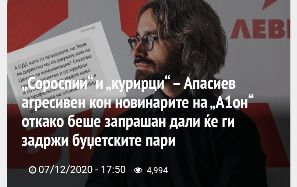 ЛИНК ДО ТЕКСТОТ НА А1 ОН – ,,Сороспии и курирци – Апасиев агресивен кон новинарите на А1ОН”