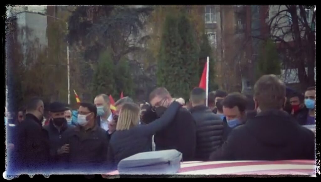 На последниот митинг на ВМРО-ДПМНЕ, непозната женска рака му ја местеше крагната на лидерот на ВМРО-ДПМНЕ. Нежно. И сензуално. А, сето тоа камерите го фатија. Значи – нежна, но невнимателна.