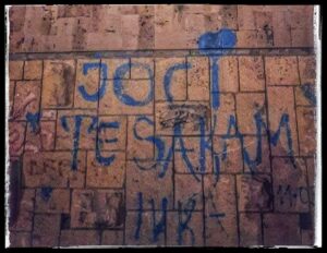На камените блокови на Кејот на Вардар, осветлен силно од зградите на Никола Груевски од проектот ,,Скопје 2014″, на неколку чекори од ориенталните мириси на Турска Чаршија, гордо блеска графитот – ,,Јоци те сакам”. Ми ја испрати мојот пријател Ниметула Салиага, додека бил во прошетка со својата ќерка. Забележал и едноставно – фотографирал. Неговото око … Continue reading ,,Јоци, те сакам”, блеска под светлата на Груевски и близу Турска Чаршија