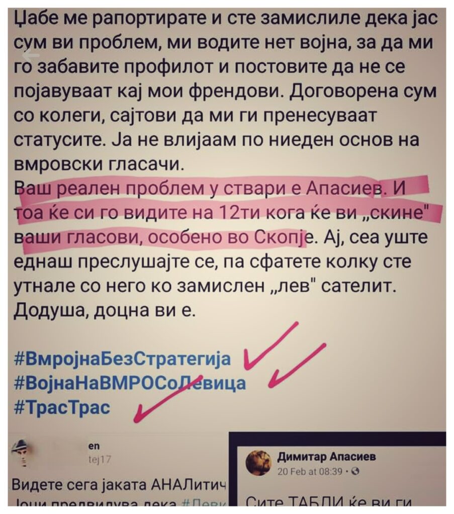 Во онлајн емисија на ,,Инфомакс”, вечерва, лидерот на ВМРО-ДПМНЕ,  Христијан Мицкоски, ги потврди сите мои анализи, кои, како политиколог им ги укажував како партија уште од март годинава – но, веројатно раководството мислело дека не сум вредна за читање. Нема лутење.