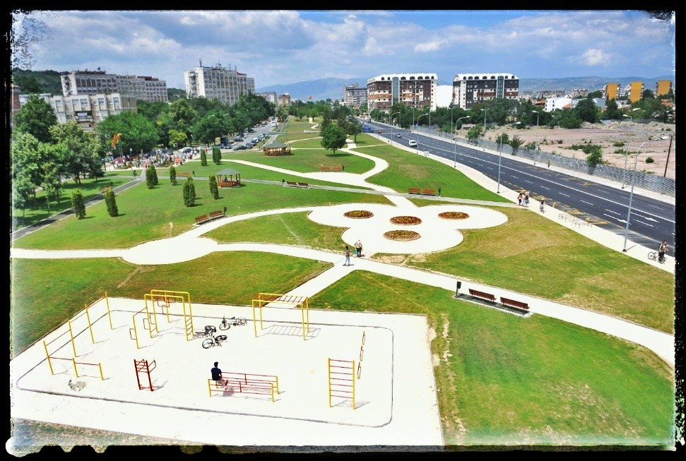 Паркот ,,Македонија”, кој се протега долж булевар Теодосиј Гологанов во Козле, има три дела и ги уреди и изгради Коце Трајановски.