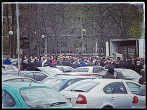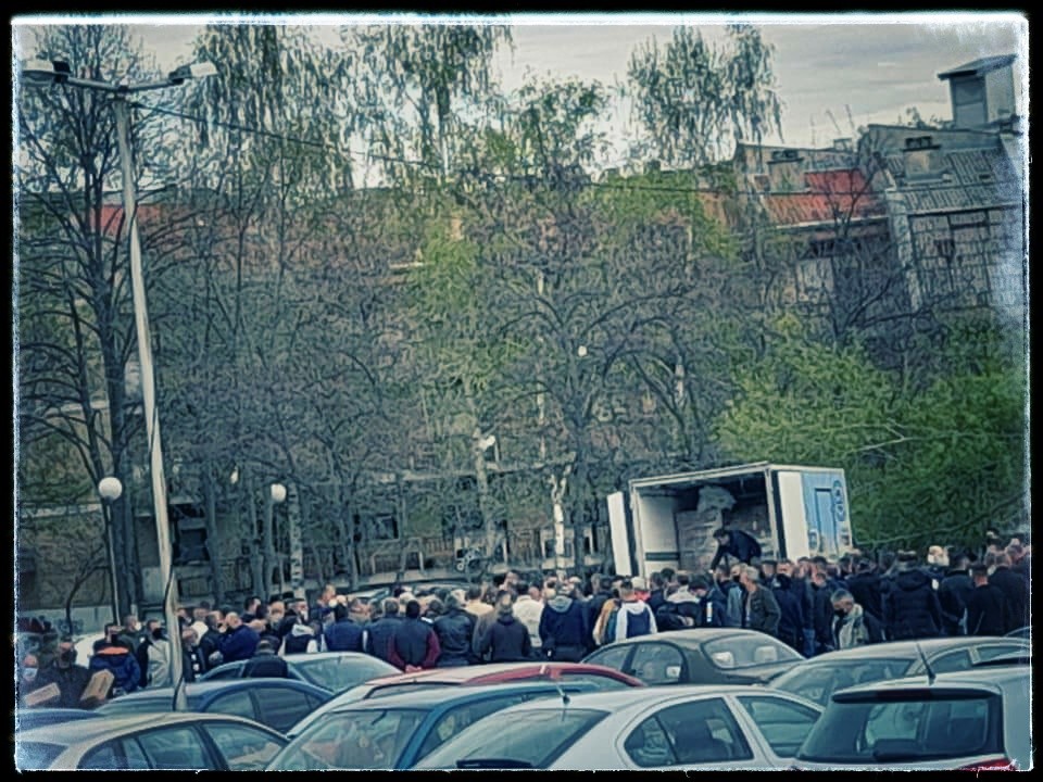 Како што раскажаа, иако станува збор за непотврдена информација, но имало безброј сведоци – синдикатот на РЕК, на паркинг, на вработените им делел сирење и месо од камион. А, лицата буквално се туркале меѓу себе и биле натиснати како сардини во ,,битката” за велигденско месо и млечни производи. На фотографијата може да се видат стотина и повеќе луѓе без дистанца, некои и без маски, во време кога во градот има најголем број на заразени лица во државата.