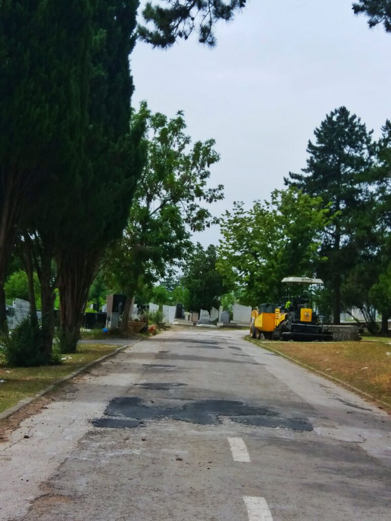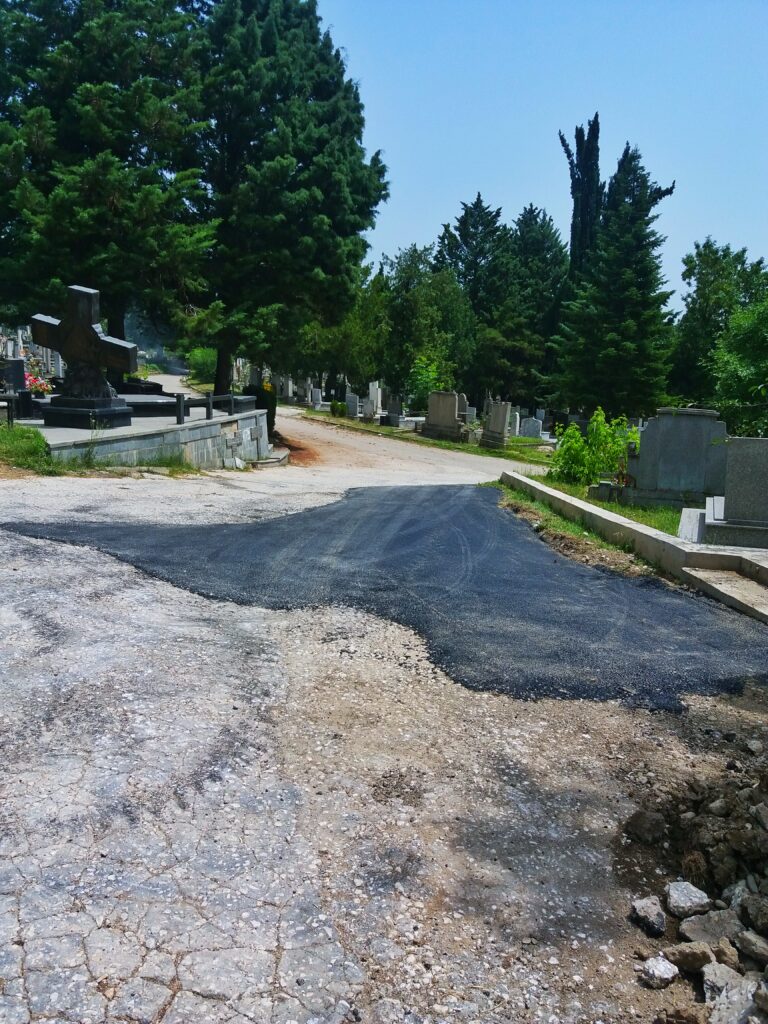 Како што можете да видите на фотографиите, на гробишта Бутел, чиј сопственик е Град Скопје, ,,Улици и патишта”, денеска, си шљакаа асфалт.
