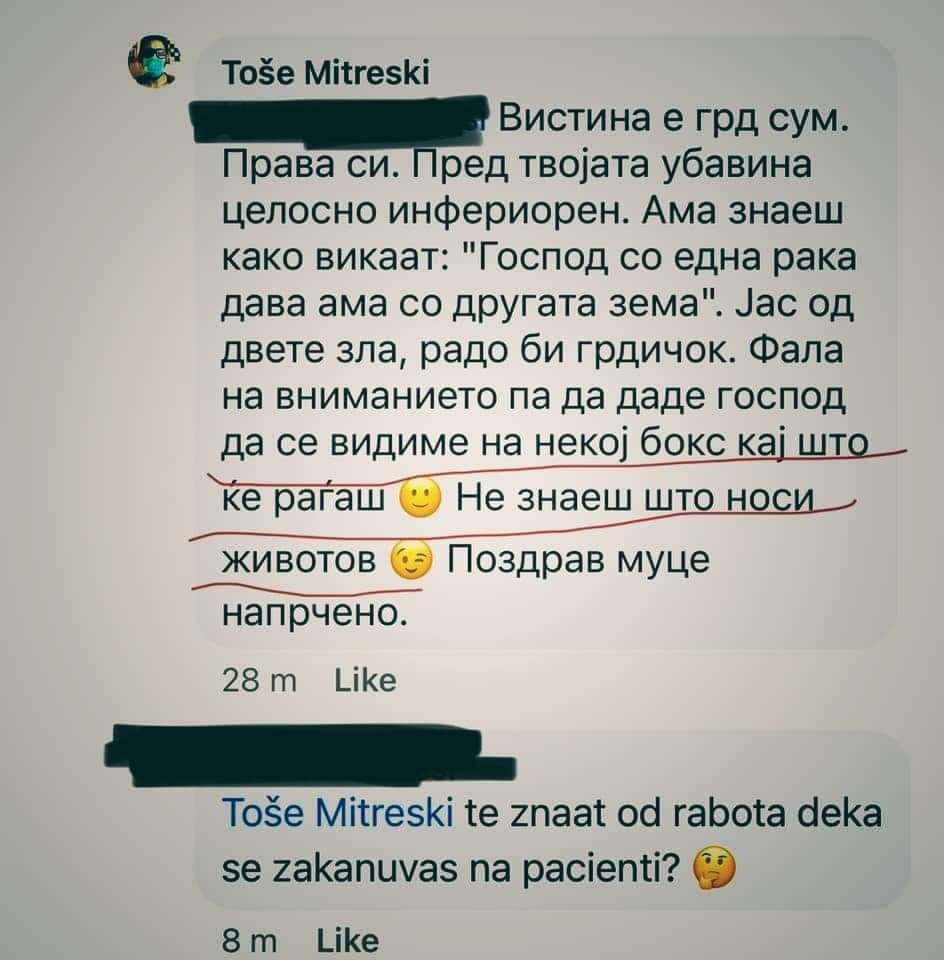 Сепак, по пресудата и покрај тврдењето на Митрески дека ги почитува жените, тој, на 5 септември годинава, на социјалната мрежа Фејсбук упати остри, навредливи коментари кон друга жена, со акцент колку е силен со ,,белиот мантил”. Неговиот вокабулар наиде на широка осуда кај женската популација, по што Митрески исчезна, го деактивираше својот профил на Фејсбук, со цел да ја намали штетата по него во граѓанската постапка во предметот каде е осуден.