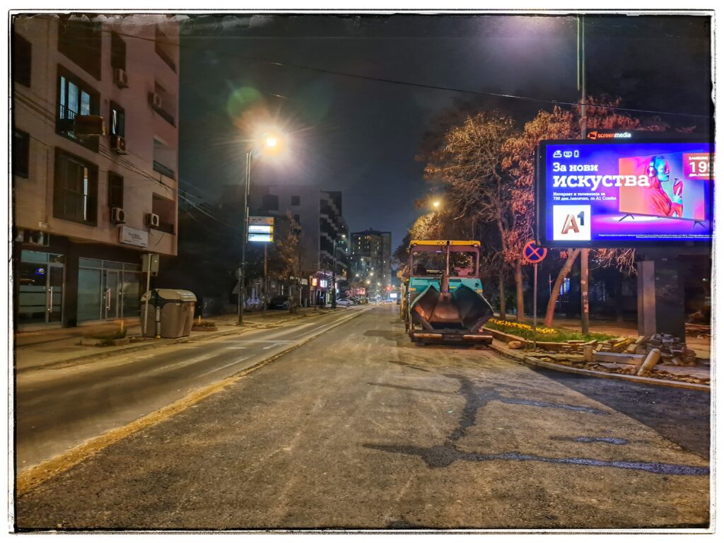 Градежните работи на едната коловозна лента од улицата Теодосиј Гологанов, делот кај Клуб на пратеници – се завршени. На терен може да се види дека едната лента е веќе асфалтирана, по што се очекува да се прекопа втората лента.