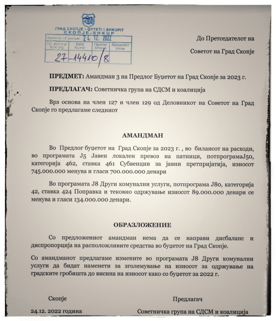 Дополнителните средства се издвоени со амандман на советничката група на СДСМ, кој потоа беше изменет со помалку средства, по поднесена програма од акционерското друштво ,,Бутел”. Амандманот беше прифатен од градската власт.