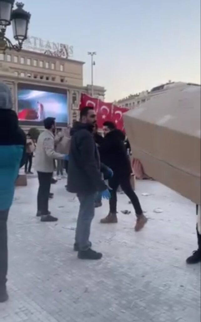 Волонтерите, кои со денови на студеното време селектираат и пакуваат во кутии донации од граѓани, се шокирани од ваквиот однос кон нив и општо кон загинатите и повредените од земјотресите во Турција. Граѓаните, веќе неколку дена, на апел од турски студенти, донациите ги носат на плоштадот, во недостаток на затворен простор кој градската власт не го определи.