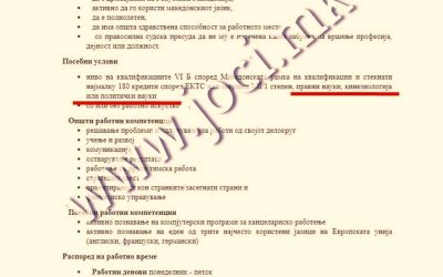 Министерството за образование и наука распишало оглас за вработување на помлад соработник во секторот за Јавни набавки на оваа институција. Во „посебните услови“ е наведено …